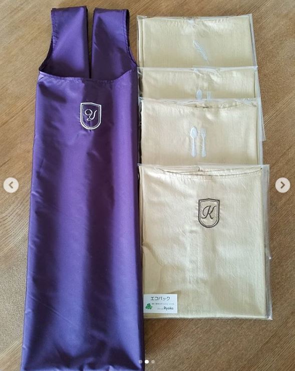 エコバッグにイニシャルの刺繍がとてもカッコイイ♪