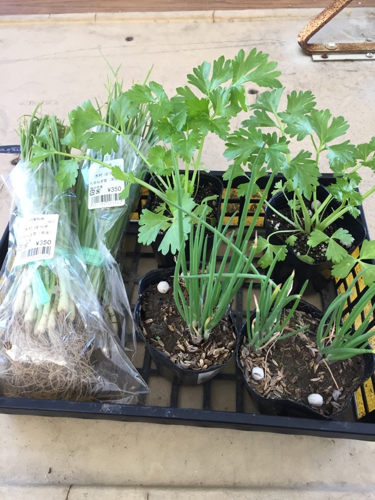 玉ねぎの苗を植える時期で、頼まれた玉ねぎ以外にもセロリとねぎを買ってみました。
