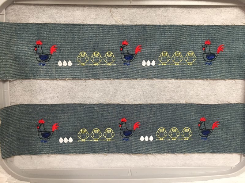 この前納品した鶏屋さんのエプロンの刺繍の試し縫いの生地がまぁまぁ大きいので試運転しま~す!