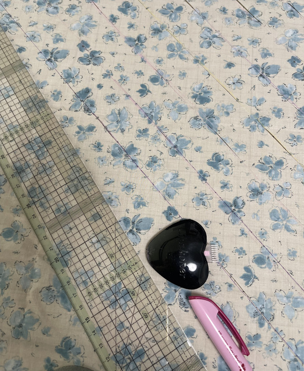 パイピングはバイヤスに使う生地をカット