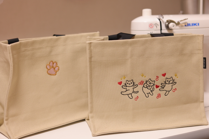 E刺繍工房の猫ちゃんCDからバッグに刺繍