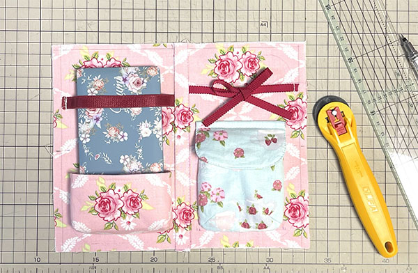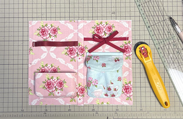 右のポケットには電源コードを入れるつもりでその上のおリボンは、コードが邪魔になるときに留めようかなと思いまして(≧∇≦)