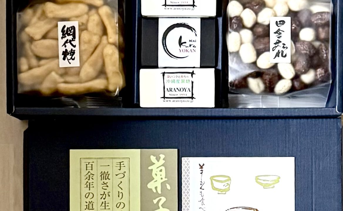 高価な箱入りのおかきと羊羹!!明日頂くのに冷やさなきゃ♡めっちゃ嬉しいでーす!