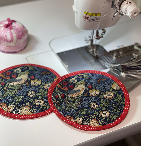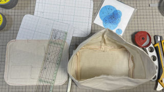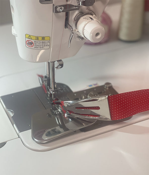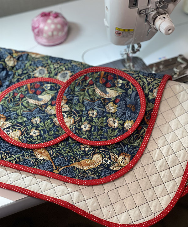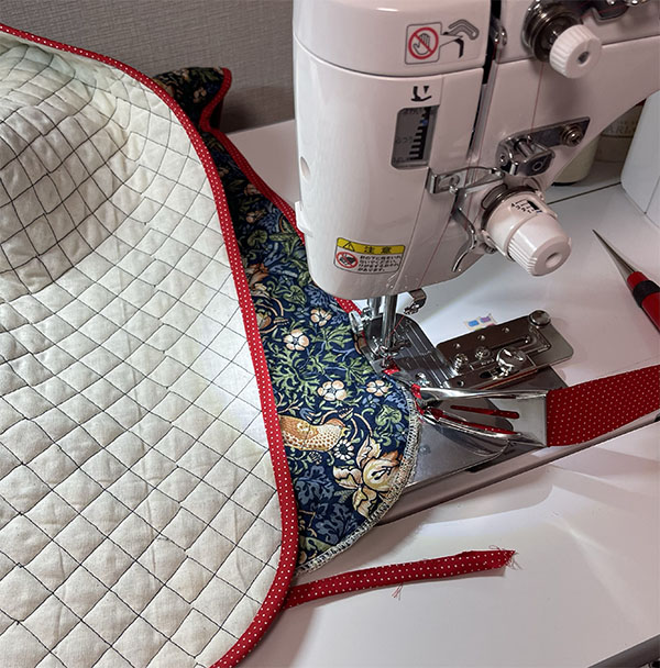キルティングの生地の周りをバイヤステープで包みます