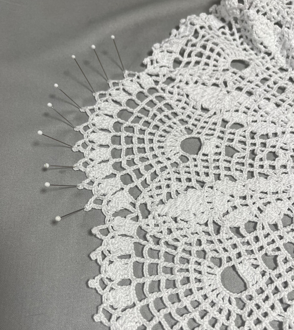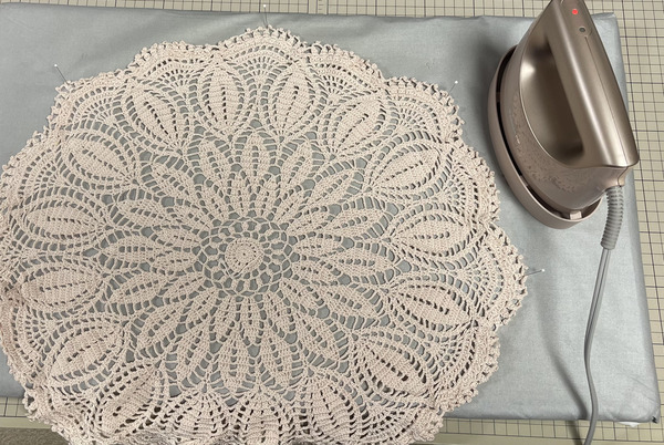 今日はレース編みの敷物をアイロンで整えました♪