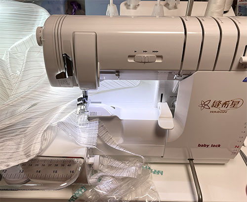 昨日出てきたカーテンレースの生地をロックしました