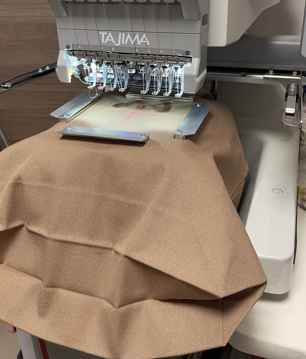 大き目のトートバッグ縦型と横型それぞれ刺繍をします♪